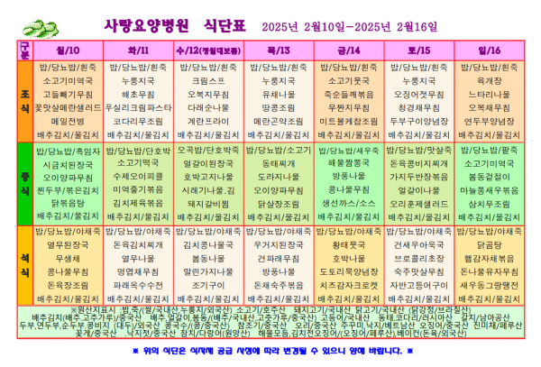 사랑요양병원 2월 둘째주 식단표